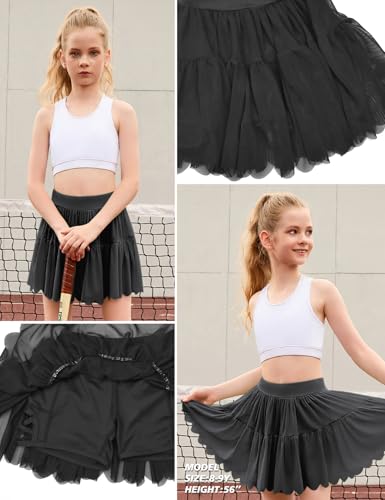Perfashion Girls Tennis Skirts Ruffle Athletic Skort Tulle Pleated Skirt with Shorts Pockets 4-13Y 4