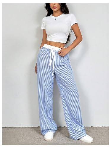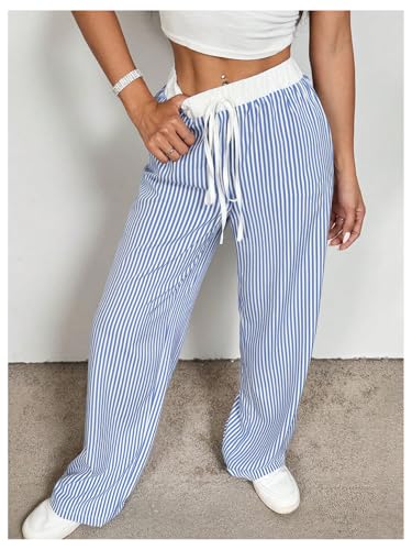 • Features: stripes print, drawstring waist, high waist, loose, casual long pants for women
