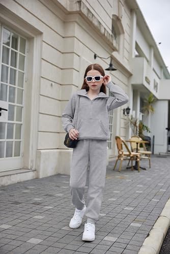Arshiner Girls 2 Piece Outfits Tracksuit Drop Shoulder Hoodie Half Zip Sweatshirt and Sweatpants Joggers Set with Pockets 6