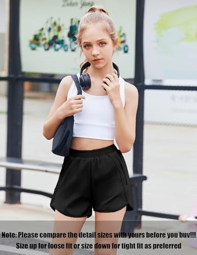 Zaclotre Girls Athletic Shorts with Zipper Pockets High Waisted Running Shorts Soccer Gym Sports Active Short for Kids 3