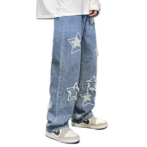 More information about FantasyGears Star Jeans Y2k Men Hip Hop Baggy Pants Straight Leg Graphic Denim Joggers Loose Fit Jeans Streetwear