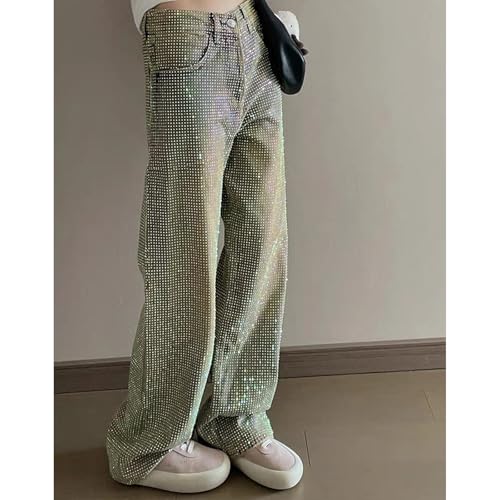 HOT ! Rhinestone Jeans Men Y2k Shiny All Over Rhinestone Jeans Men Star Studded Wide Leg Denim Pants