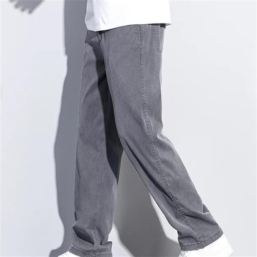 Men's Spring Fall Jeans – Thin Soft Loose Straight Wide-Leg Denim Pants, Casual Elastic Waist 7