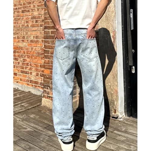 More information about Mens Straight Leg Hip Hop Rivets Jeans Baggy Sparkling Denim Pants Streetwear