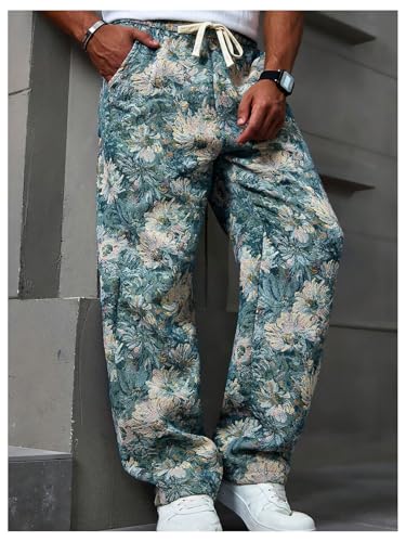 Floerns Men's Drawstring Waist Floral Jacquard Straight Leg Boho Pants 6