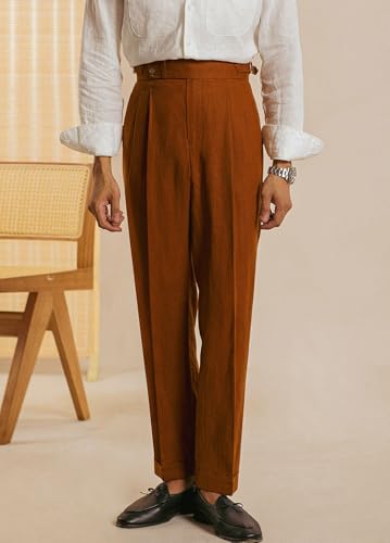 Vintage Men's Linen Pants Lightweight Premium Regular Fit Classic Dress Pants for Men Spring Summer 1