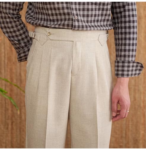 • Retro Style with Modern Comfort:These men's linen trousers blend vintage Italian design with contemporary comfort. Featuring a classic straight leg cut and double pleats, they offer a refined look perfect for both casual and business settings, making them a versatile addition to your wardrobe.
