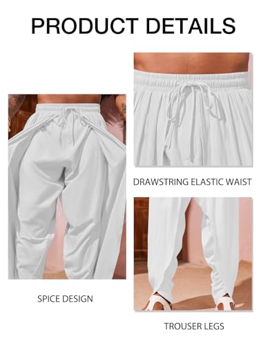 • MATCH - These Indian Dhoti Pants can be easily paired with a Islamic Caftan Robe, Muslim Thobe, Kaftan and Arab Thobe. Also can be matched with T-shirt, button down shirts and sneakers to create a casual look, or paired with a beach shirt and sandals for a vacation style.