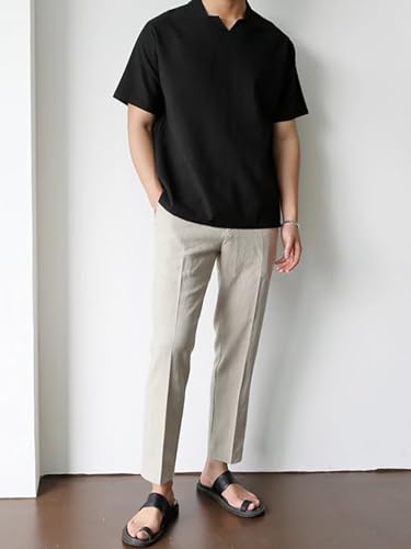 • Retro Style with Modern Comfort:These men's linen trousers blend vintage Italian design with contemporary comfort. Featuring a classic straight leg cut and double pleats, they offer a refined look perfect for both casual and business settings, making them a versatile addition to your wardrobe.