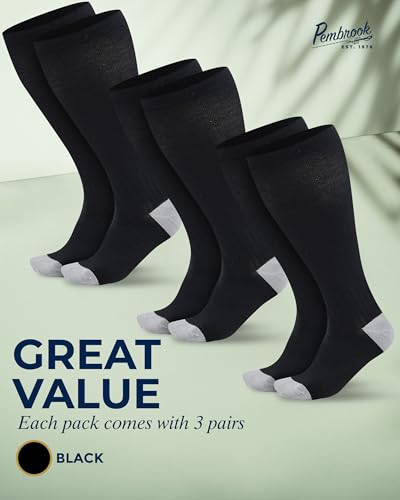 HOT ! Pembrook 3 Pairs Plus Size Compression Socks Wide Calf - Bamboo Viscose Compression Socks Men, Knee High, Black