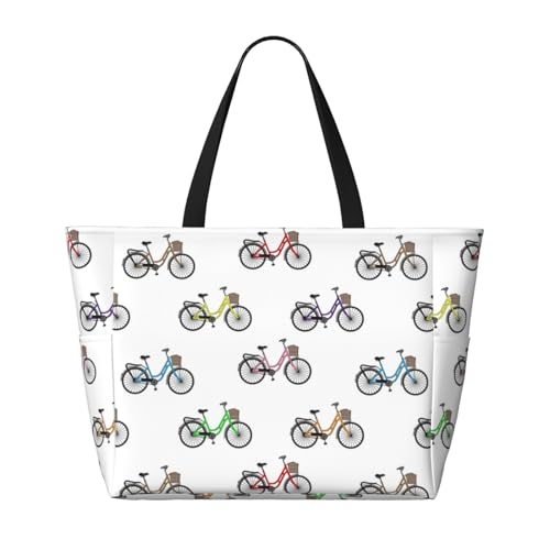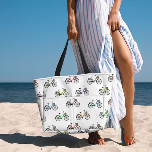Colorful Bicycle Pattern Large Beach Bag Waterproof Sandproof Swim Tote Pool Bag For Women With Zipper 7