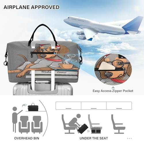 Weekender Bags Travel Duffel Gym Bag Dachshund Books Carry on Overnight Tote Bag with Toiletry Bag for Airplane Travel Trip Gym Yoga 4