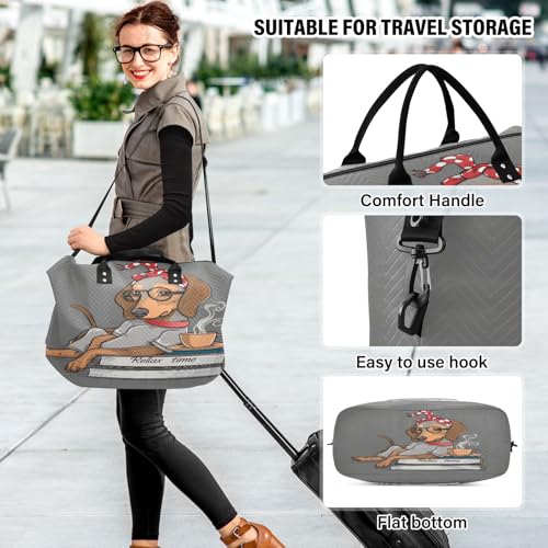 Weekender Bags Travel Duffel Gym Bag Dachshund Books Carry on Overnight Tote Bag with Toiletry Bag for Airplane Travel Trip Gym Yoga 6