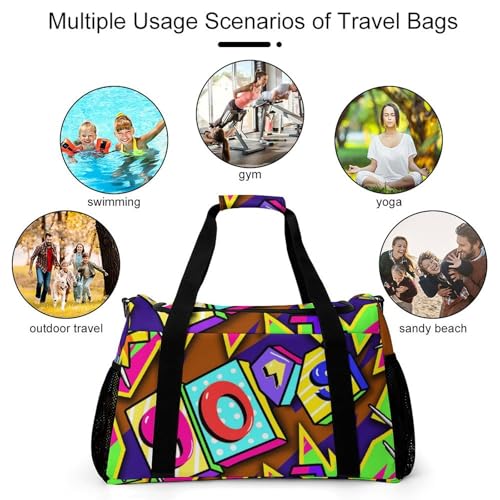 80s Sport Gym Bag Travel Duffle Bags Weekender Overnight Bags Carry On Crossbody Handbag For Beach Workout Yoga 3