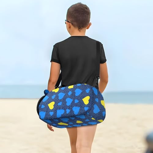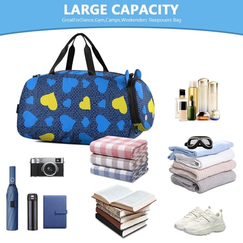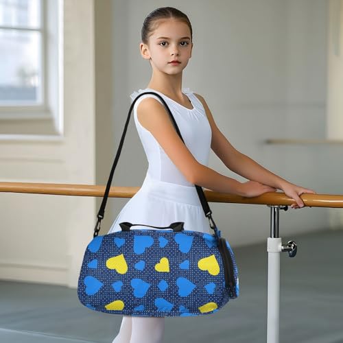 HOT ! Polka Hearts Blue Kids Travel Duffel Bag for Boys Girls Overnight Weekend Tote Bag with Shoes Compartment for Dance Gym Sports