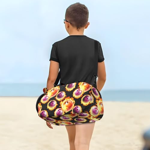 Flaming Bowling Black Kids Travel Duffel Bag for Boys Girls Overnight Weekend Tote Bag with Shoes Compartment for Sleepover Trip Beach 7
