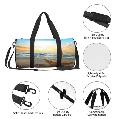 • Large Capacity: The Beach Starfish Printed Large-Capacity Travel Bag Has A Circular Design With A Diameter Of 9 Inches And A Length Of 17.7 Inches. The Spacious Main Compartment Can Accommodate Clothing, Towels, Shoes, And Other Sports Equipment