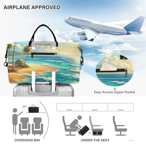 Beach Scene Palm Trees Travel Duffel Bag, Shoulder Weekender Overnight Bags - Large Gym Bag with Wet Pocket 4