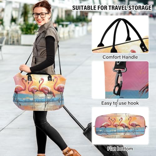 HOT ! Flamingo Beach Sunset Duffle Bag for Travel, Gym Bag with Multiple Interior Pockets for Men Women Overnight Box Included 20.5 x 1.9 x 13.8 In