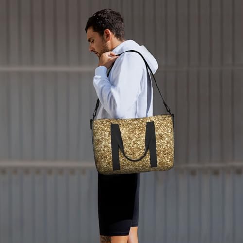 Gold Confetti Glitter Foldable Travel Tote Bag With Multiple Pockets Durable Weekend Overnight Duffel Bag For Gym Camping Hiking Business Trip 7