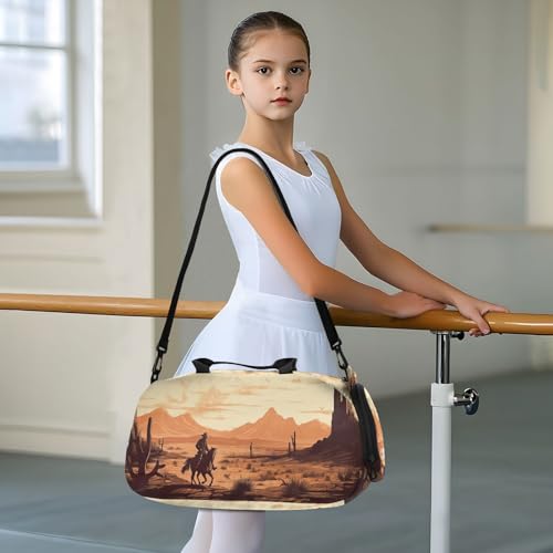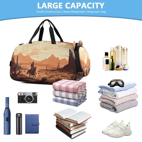 YETTASBIN Sport Travel Duffel Bag for Girls Boys, Cowboy Large Waterproof Weekender Overnight Bag, Detachable Shoulder Strap Gym Bag with Shoe Compartment & Wet Pocket 5