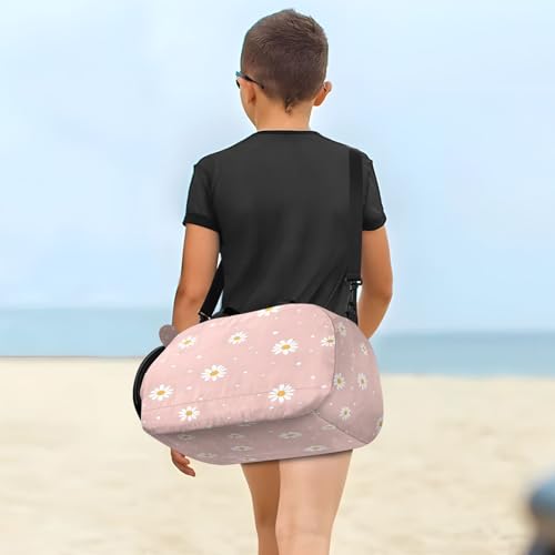 YETTASBIN Sport Travel Duffel Bag for Girls Boys, Daisy Flower Large Waterproof Weekender Overnight Bag, Detachable Shoulder Strap Gym Bag with Shoe Compartment & Wet Pocket 5
