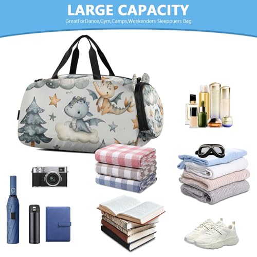YETTASBIN Sport Travel Duffel Bag for Girls Boys, Cute Dragon Large Waterproof Weekender Overnight Bag, Detachable Shoulder Strap Gym Bag with Shoe Compartment & Wet Pocket 5