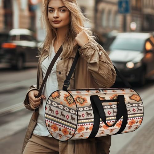 HOT ! Ethnic Horse Duffle Bag for Travel Large Size Tribal Printed Travel Duffel Bags for Men Lightweight Weekender Overnight Duffel Bag with Soft and Adjustable Strap