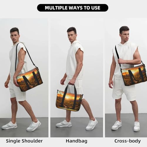 • Easy to Clean & Store: Designed for convenience, this carry on overnight bag gym bag is easy to hand wash and quick to dry. When not in use, Saguaros at Sunset fitness workout bag can be folded compactly, saving space in your closet or luggage. Its practical design ensures it's always ready for your next adventure.