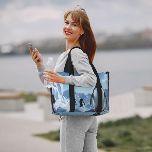 • Multipurpose: Suitable for travel bag, hospital bags for labor and delivery, yoga gym bag, diaper bag, weekend bag, overnight bag, a short journey bag, a toiletry bag, women's gym bag, workout bagpersonal item bag for airlines. This Penguin Antarctica Ice luggage bag is an airport saviour - take a duffel on weekend camping trips or travel