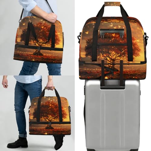 HOT ! Large Weekender Overnight Bags Fall Leaves Butterfly Travel Duffel Bag for Women Men Gym Bag With Shoe Compartment Foldie Travel Tote Bag Carry On Personal Item Bag for Travel Gym Sports