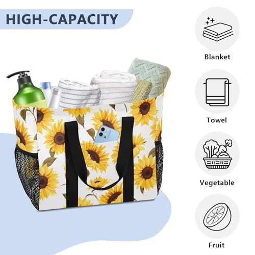 Sunflowers White Leaf Foldable Travel Duffel Bag for Men Women Waterproof Weekender Overnight Carry On Tote Bag with Comfortable Handle Luggage Bag for Airplane Business Trips Sport Hospital 7