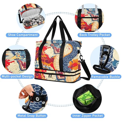 HOT ! Cloudy Sky Dragon Gym Bag for Women Sport Travel Duffel Bag Shoulder Weekender Overnight Bags with Wet Pocket & Shoe Compartment