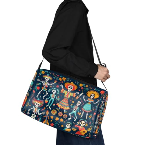 Gym Bags for Men 14.8 Inch Lightweight Carry On Bags for Airplanes Waterproof Duffle Bag for Travel, Dark Retro Skull Printing 7