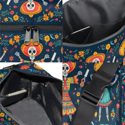Gym Bags for Men 14.8 Inch Lightweight Carry On Bags for Airplanes Waterproof Duffle Bag for Travel, Dark Retro Skull Printing 4