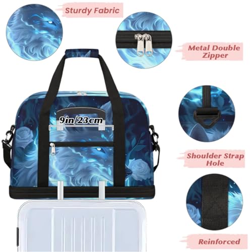 Travel Duffel Bags Wolf Foldable Weekender Bags for Women with Shoes Compartment Waterproof & Tear Resistant Carry on Overnight Luggage Duffel Bag Shoulder Sports Tote Bag 5