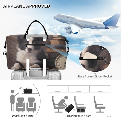 Large Travel Duffel Bag, Cute Sheepdog Puppy Book Sport Tote Gym Bag, Shoulder Weekender Overnight Bag for Women Men, Carry On Luggage with Toiletry Bag 7