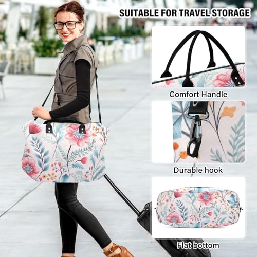Large Travel Duffel Bag, Handdrawn Floral Sports Tote Gym Bag, Shoulder Weekender Overnight Bag for Women Men, Carry On Luggage with Toiletry Bags 7