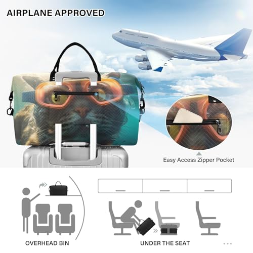 More information about Large Travel Duffel Bag, Cat Diving Sports Tote Gym Bag, Shoulder Weekender Overnight Bag for Women Men, Carry On Luggage with Toiletry Bags