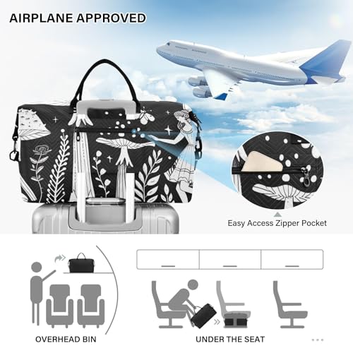 More information about Large Travel Duffel Bag, Mushroom Butterfly Sports Tote Gym Bag, Shoulder Weekender Overnight Bag for Women Men, Carry On Luggage with Toiletry Bags