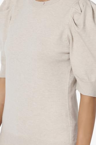 HOT ! TheMogan Women's Puff Short Sleeve Knit Sweater Cozy Crew Neck Casual Lightweight Pullover Top