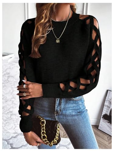 HOT ! SweatyRocks Women's Criss Cross Cut Out Sleeve Round Neck Hollow Out Knit Sweater Tops
