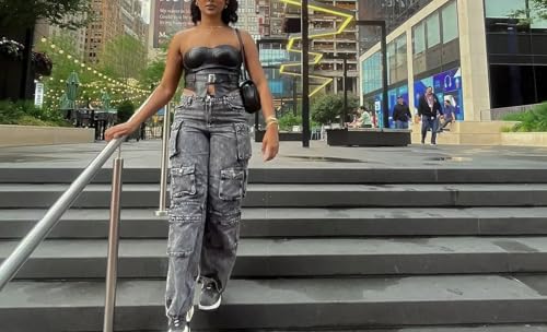 LKOUS Women's Y2K Baggy Straight Wide Leg Cargo Jeans, Streetwear High Waisted Denim Pant 6