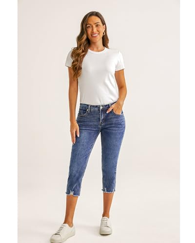 HOT ! luvamia Jean Capri Pants for Women High Waisted Ripped Skinny Jeans Stretchy Denim Capris Cropped Jeggings with Pockets