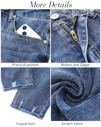 • luvamia ripped skinny jeans come with 5 functional pockets. With these capri pants for women stretch, you'll have the perfect amount of space to carry your essentials while maintaining a trendy look. The distressed and frayed hem detailing on the bottom of these womens jean capris add a chic vibe to your ensemble.