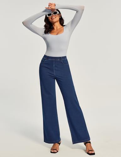 HOT ! Ewedoos Wide Leg Jeans Woman High Waisted Stretchy Baggy Jeans for Women Pull On Trendy Womens Jeans Straight Denim Pants
