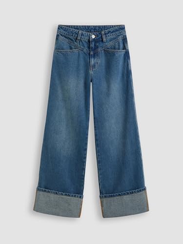 CIDER Women’s Baggy Jeans Straight Wide Leg High Waisted Fold Hem Denim Pants with Pockets 6