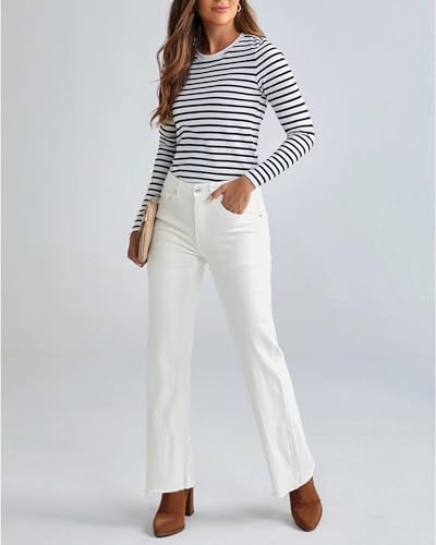 HOT ! Vetinee Straight Leg Jeans for Women Trendy High Waisted Frayed Hem Stretchy Denim Pants Relaxed Casual Trouser Jeans