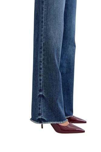 HOT ! Judy Blue Women's Mid-Rise Tinted Wide Leg Jeans with Raw Hems