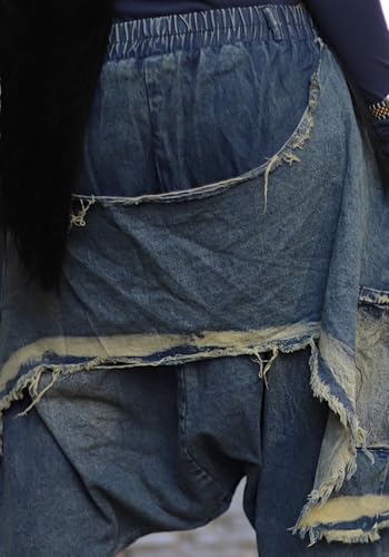 More information about Vaceky Denim Harem Pants Women Elastic Waist Distressed Cropped Baggy Cargo Jeans